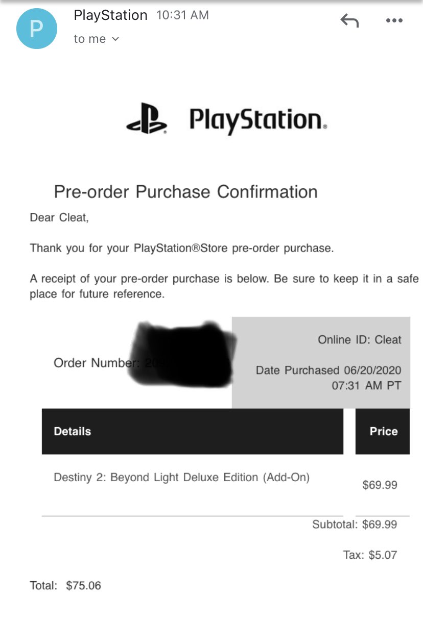 Ps5 Pre Order Receipt